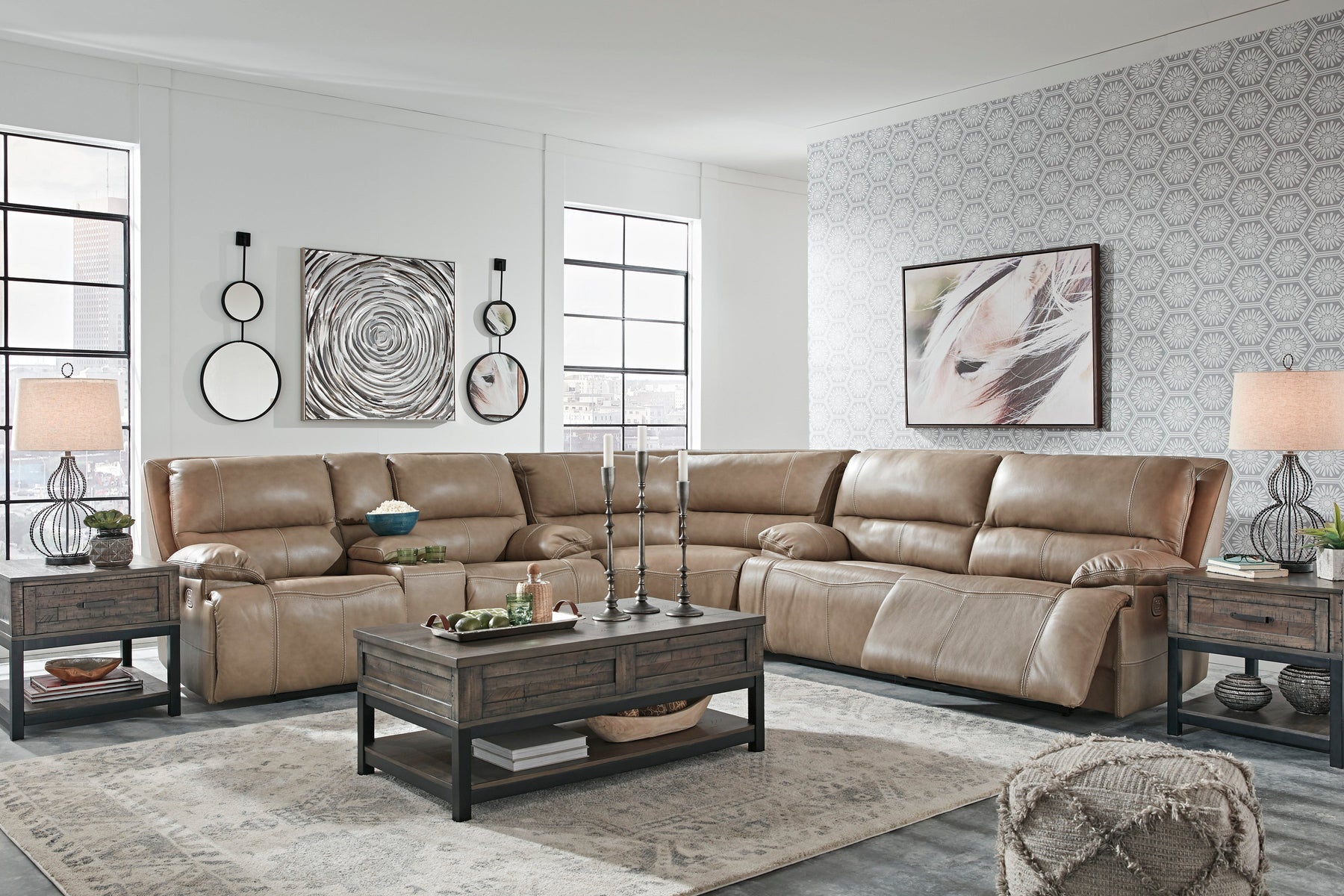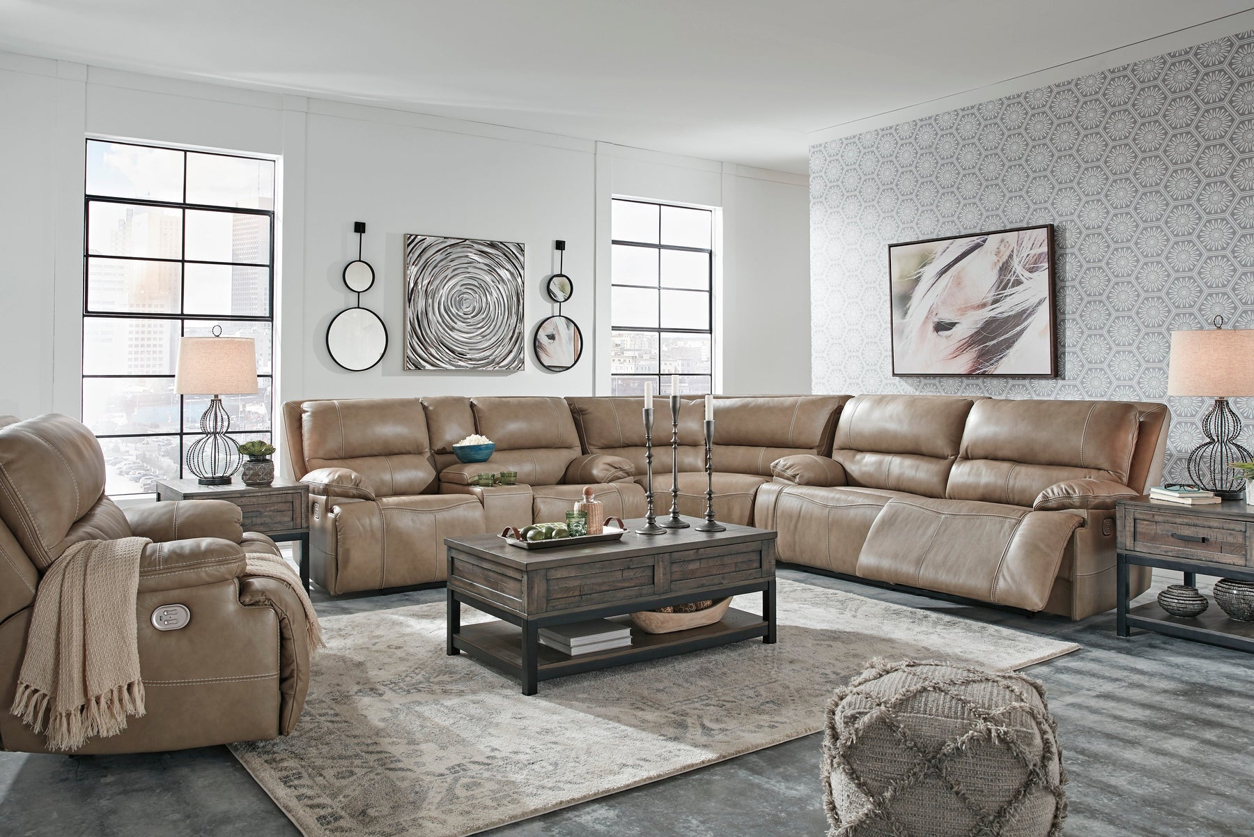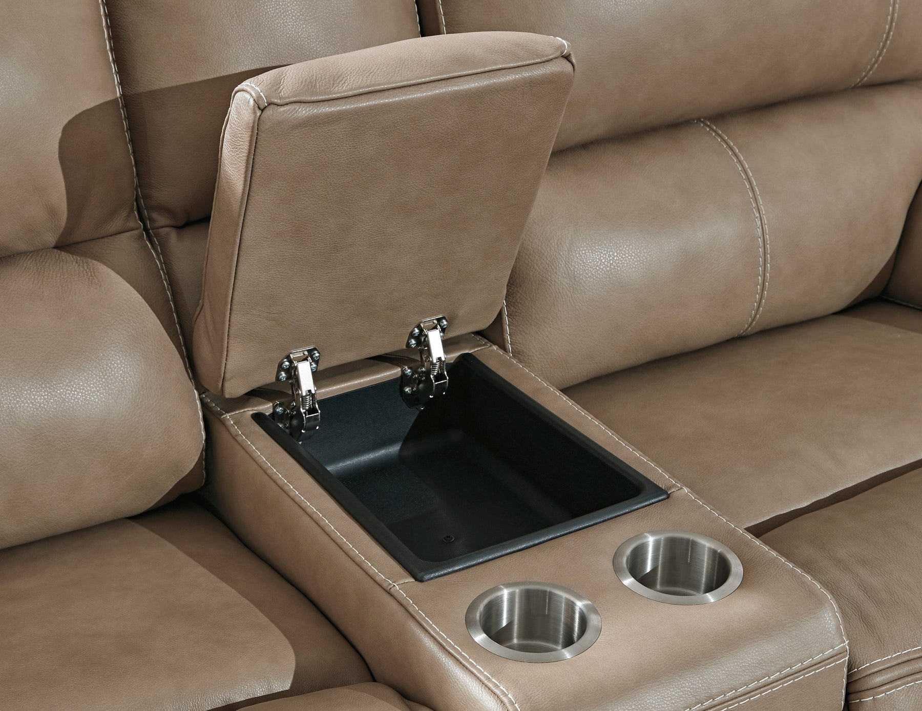 Life is so much better when you can enjoy the pleasure of real leather—at a price to put you at ease. That’s exactly what you get with this power reclining sofa. Thanks to real leather throughout the seating area, you've got a reclining sofa that feels like a million bucks but won’t break the bank. Tailored to those with an eye for contemporary design, this power reclining sofa is dressed to impress with an upscale matte finish, clean-lined divided back tufting, distinctive jumbo stitching and chic pillow top armrests. Perhaps best of all: Easy View™ power adjustable headrests let you recline back and still have a primo view of the TV.