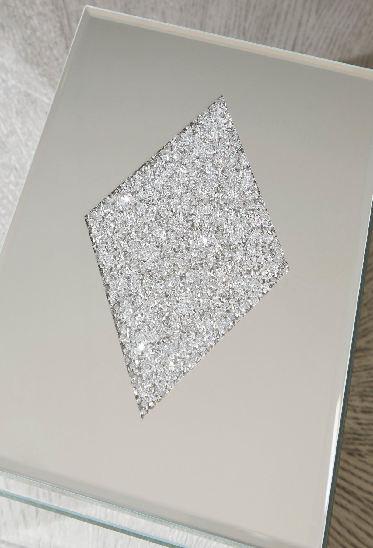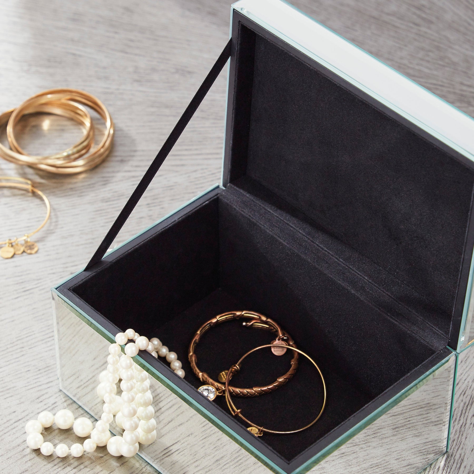 This set of two keepsake boxes make storage so glamorous. The cut-glass mirror finish and acrylic beaded design on top is completed inside with a black cotton lining. The perfect place for your dearest keepsakes while adding a touch of sparkle to your decor.