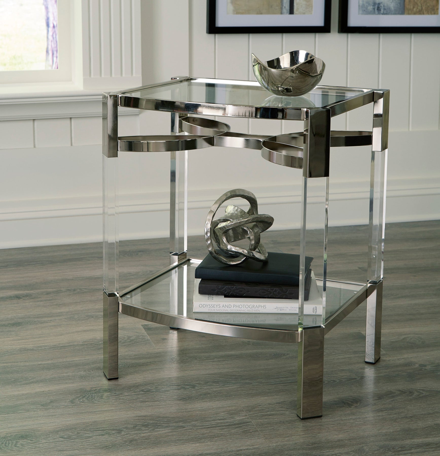 If you love the idea of total transparency, this accent table is surely a sight for sore eyes. Crafted of clear acrylic, the glass top and open glass shelf is beautifully on trend. Sleek chrome plated metal legs with clear acrylic accents add a touch of elegance to your mid-mod vibe.