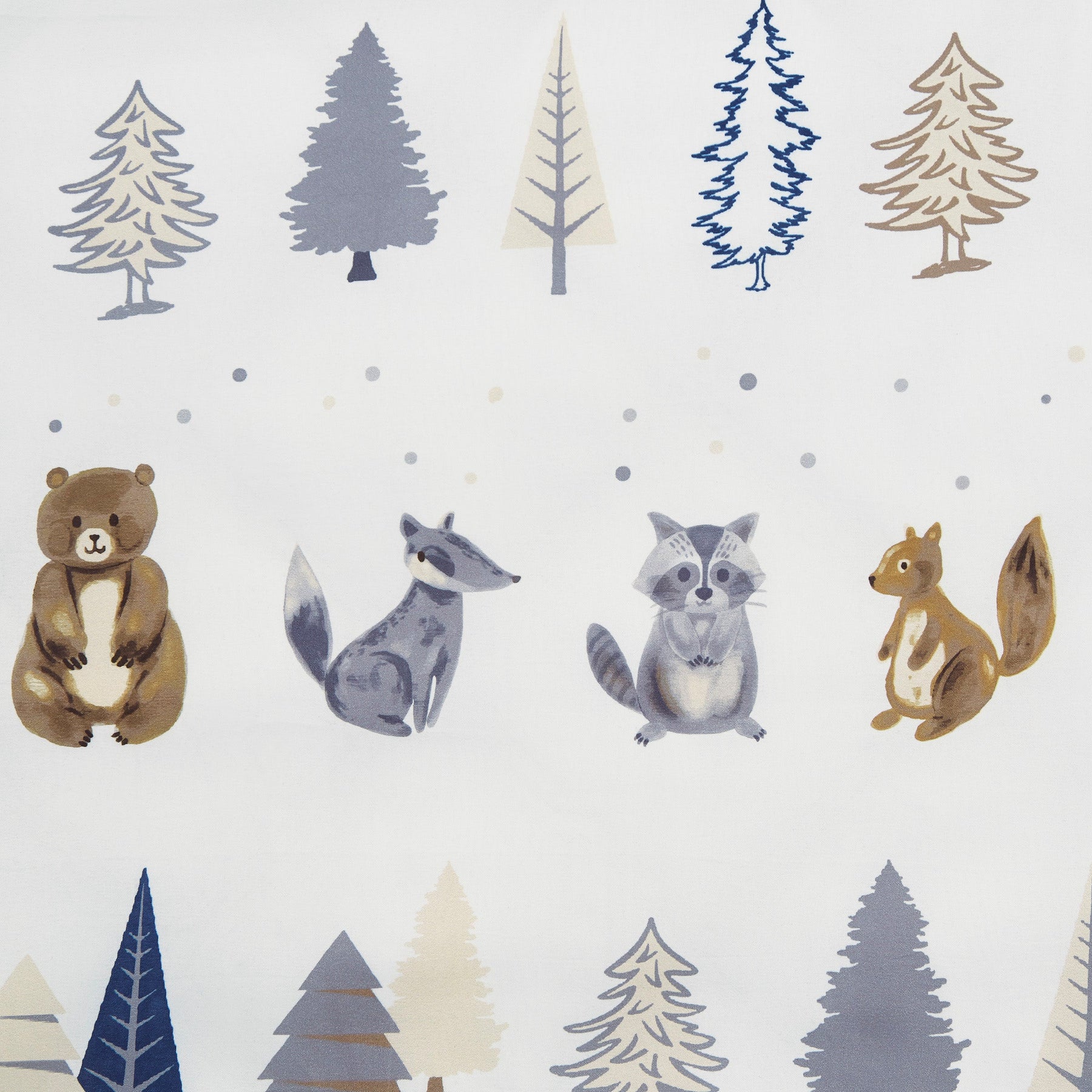 Bring the outdoors inside with this comforter set. The solid golden brown stitched geometric pattern reverses to a woodland animal design in shades of brown, navy and white. Perfect for the nature lover in your life.