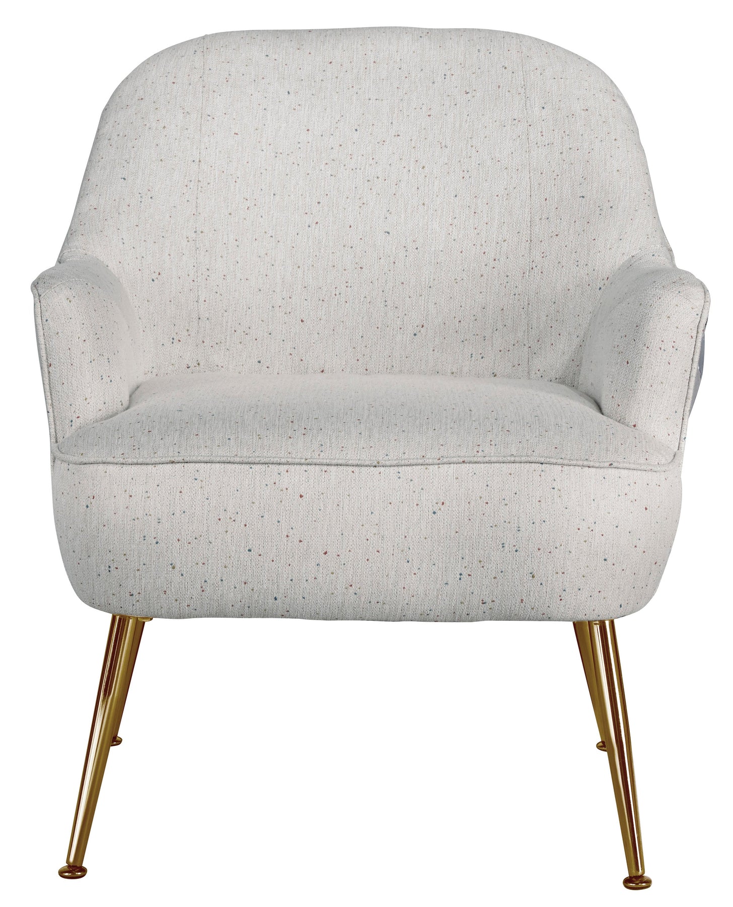 Give your modern space a vintage sensibility in a really cool way. This accent chair harkens back to mid-century style. The beige polyester upholstery sports multi-color speckles above the goldtone finished metal legs.