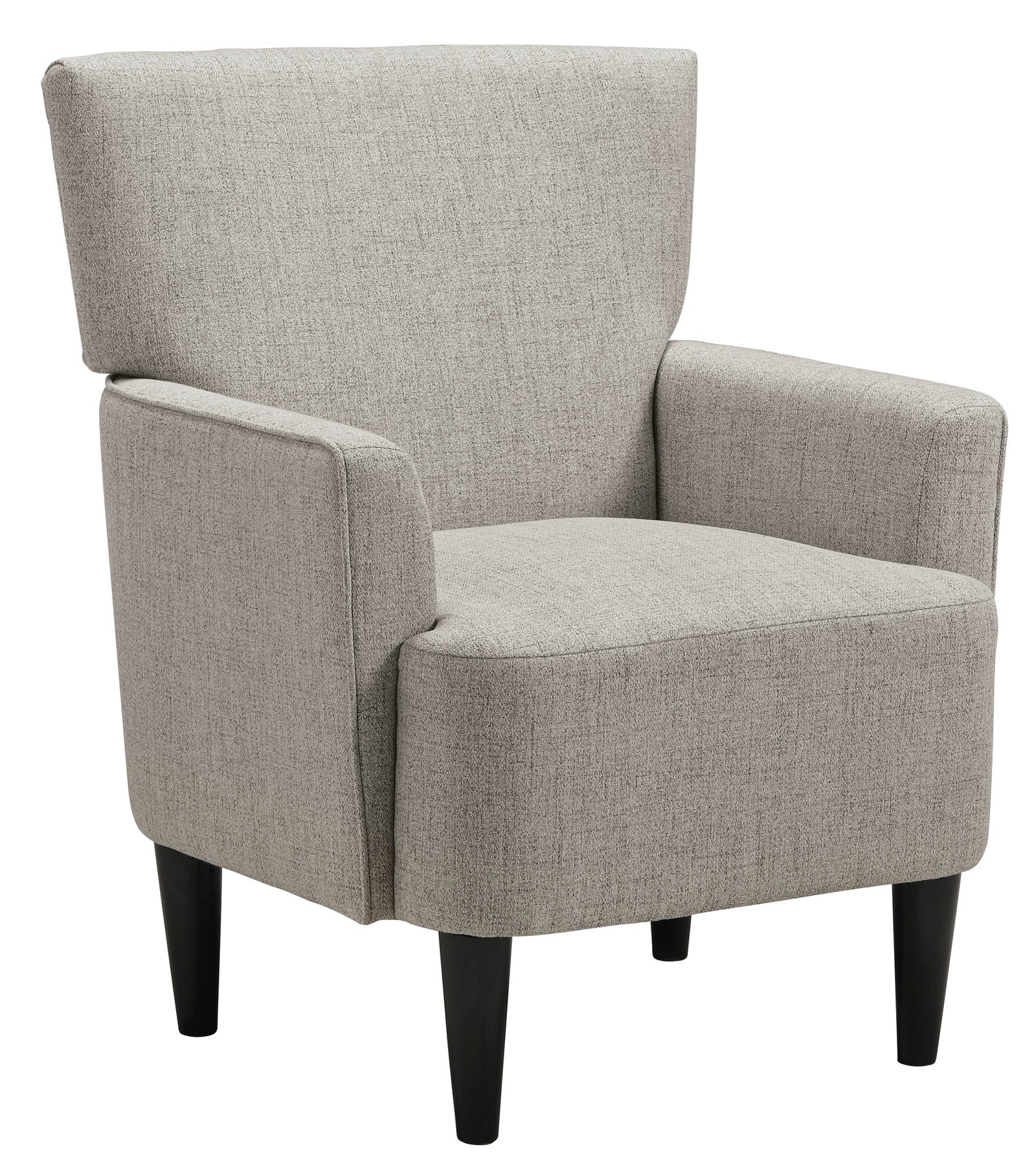 Tailor your space to your own tastes with this accent chair. Track arms and a sesame beige upholstery create a crisp impression. Exposed legs in a black finish add to the air of modernity.