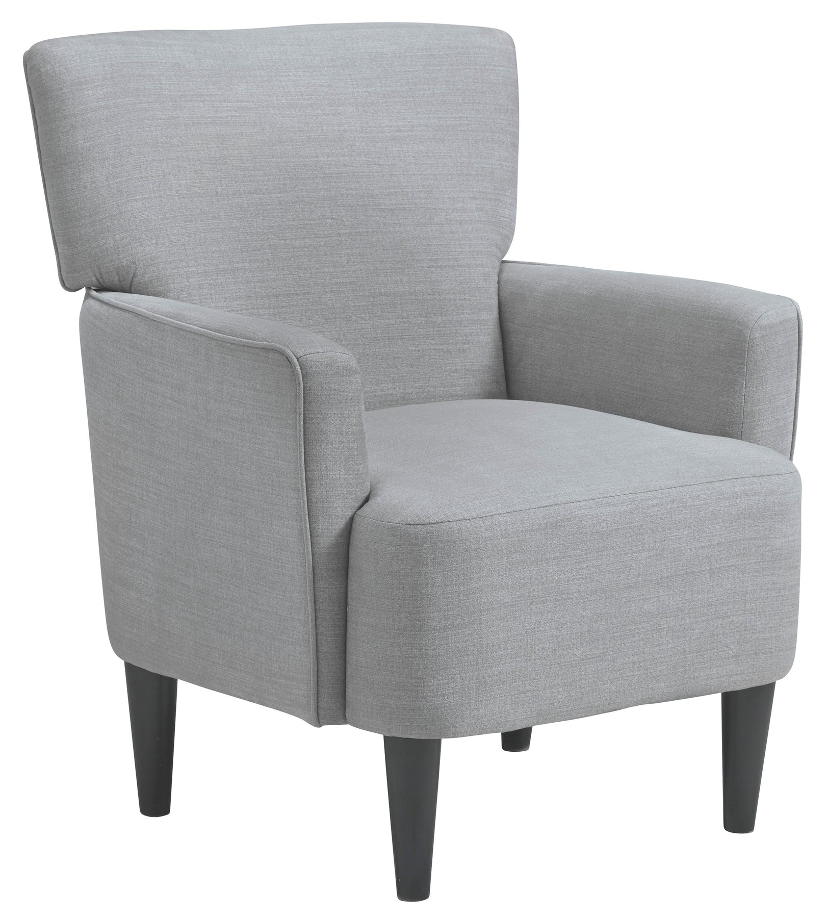 Tailor your space to your own tastes with this accent chair. Track arms and light gray upholstery create a crisp impression. Exposed legs in a black finish add to the air of modernity.