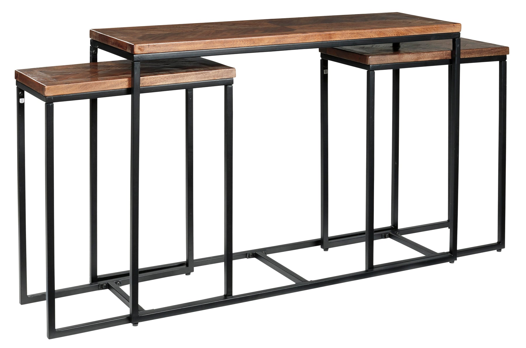 Merging crisp, clean lines with distressed finishing and a timeless herringbone pattern, this console/sofa table set with nesting design is sure to beautify your nest. Whether placed behind a sofa or sectional or gracing an entryway, this three-in-one table set is one high-style option.