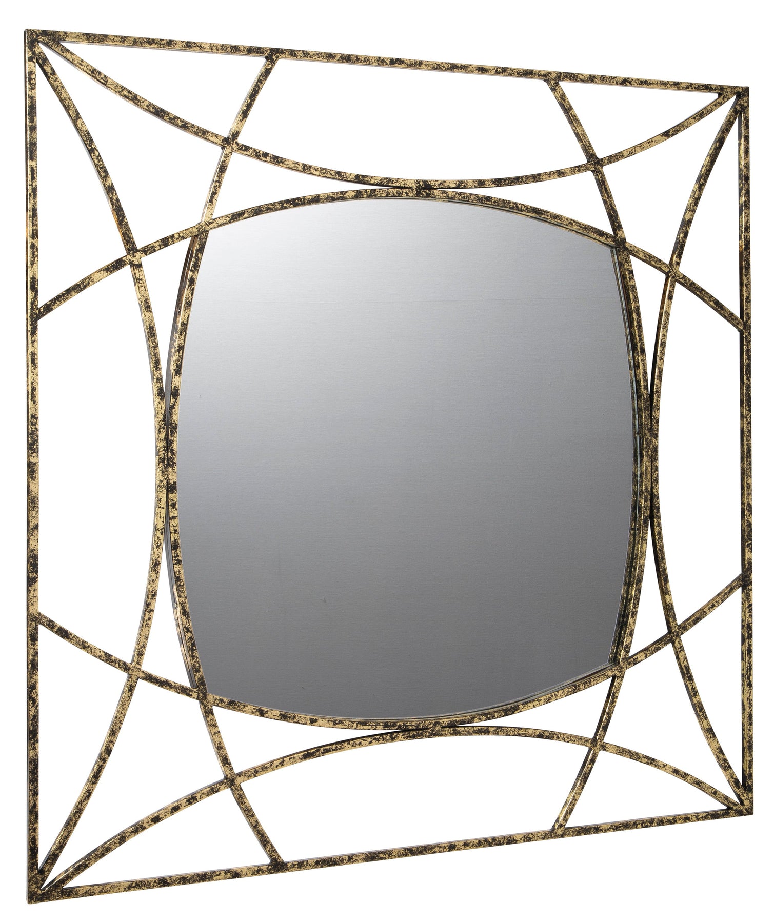 Intersecting arcs set the stage for a one-of-a-kind wall mirror. Enjoy its open-and-airy contemporary design in a bedroom, living space or entryway. Black metal frame with goldtone foil accents is the perfect reflection of your eclectic style.