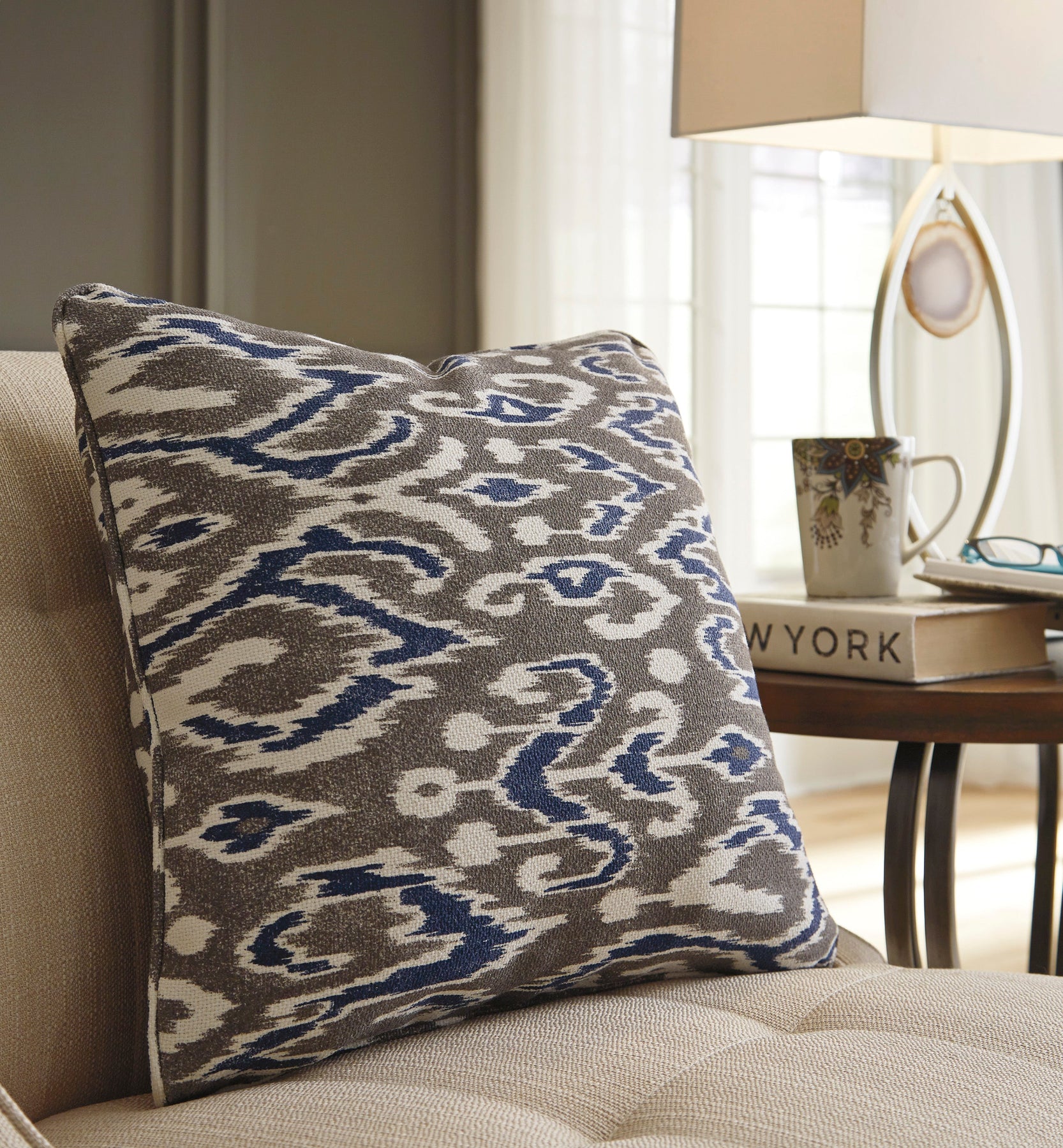 Casually cool style works inside and out with this indoor-outdoor pillow with high-performing Nuvella® fabric. Easy-breezy ikat pattern is beautifully on trend. Muted tones of blue and brown make for a sultry, earthy blend.