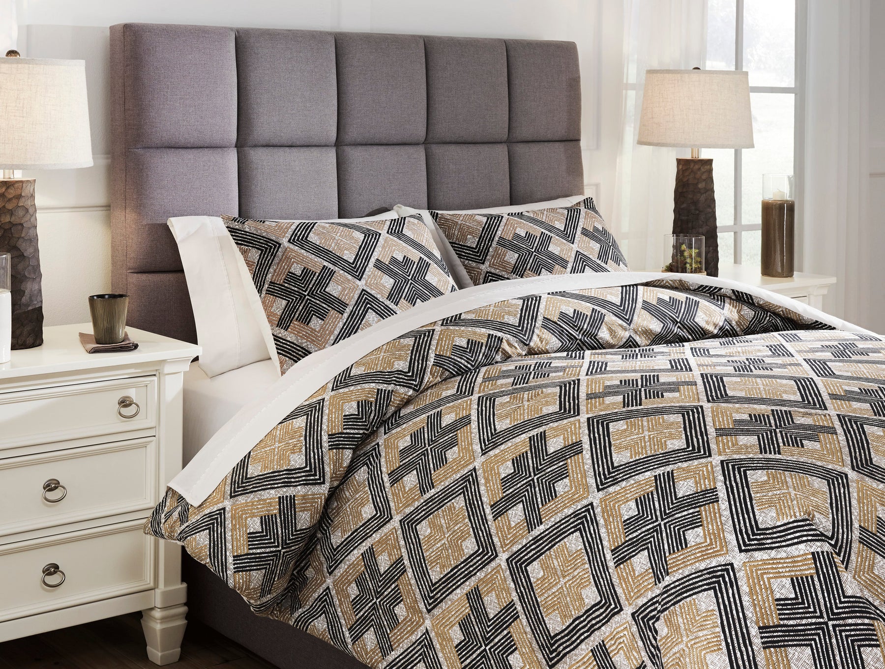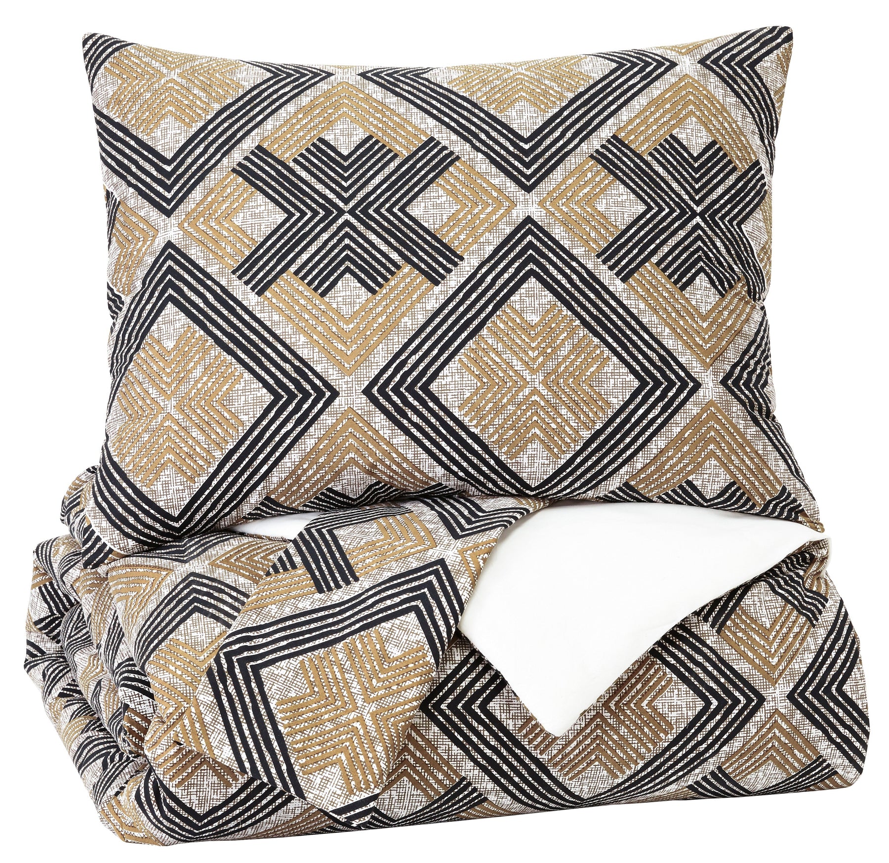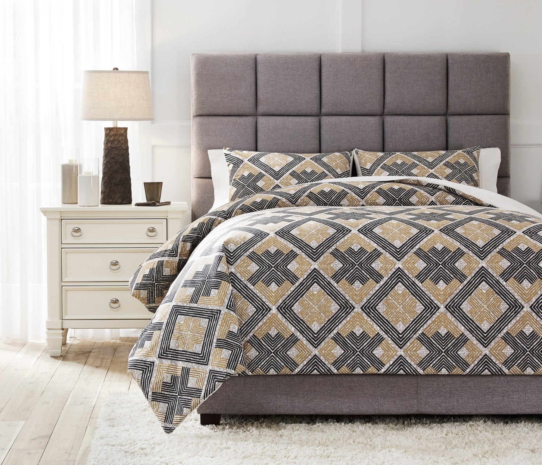 Elevate the look and feel of your bedroom with this bold and beautiful queen comforter set. Its crisp and clean geometric pattern adds a decidedly modern mood. Cotton cover brings a dreamy touch.