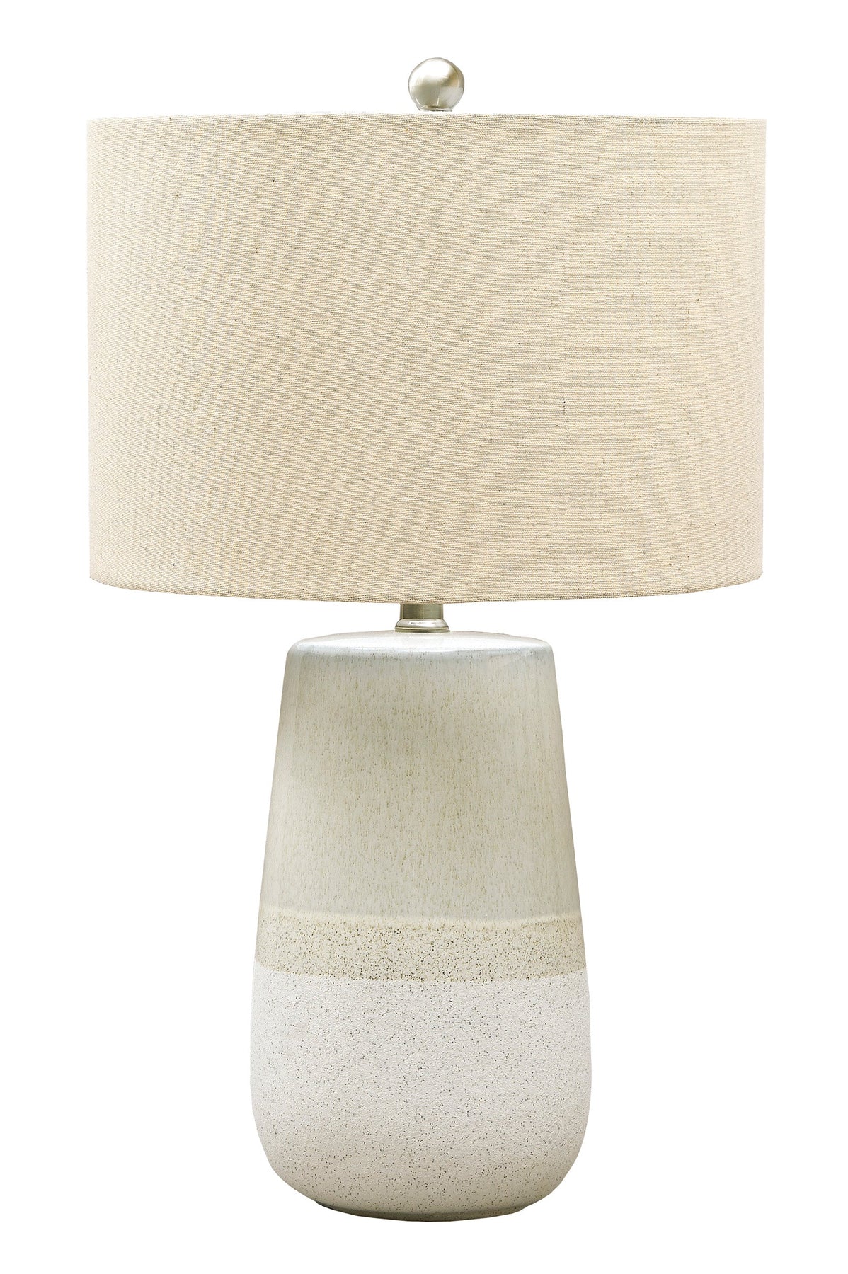 With a textured neutral glaze, this monochromatic table lamp brings thoughts of sun, surf and sand to your space. Turn coastal chic to the contemporary side with this transitional lamp.