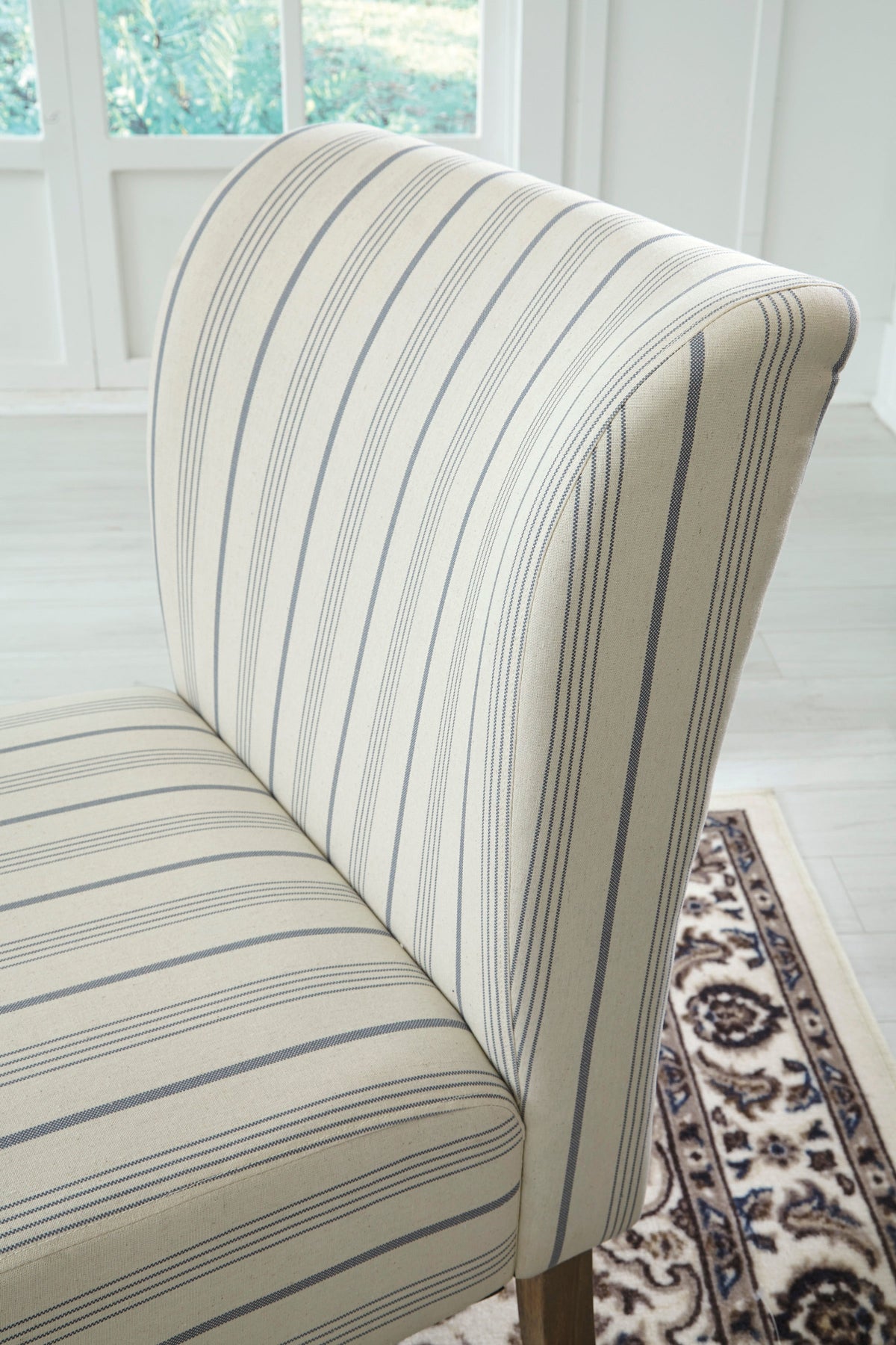 This slipper chair wows with elegant upholstery and sleek, linear design. Cool and casual, this chair is the perfect accent for the living room, dining room or bedroom. Gray-washed finish gives a fresh, vintage appeal.